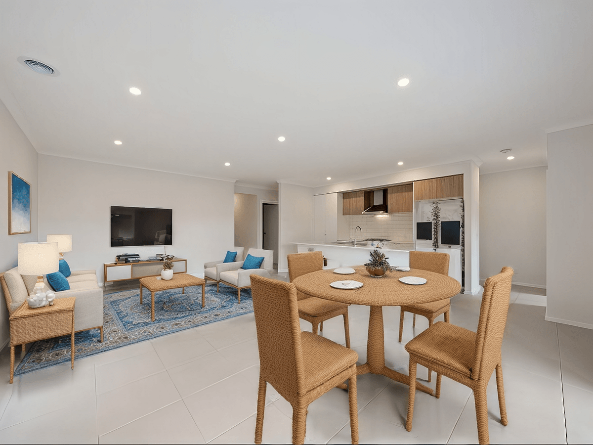 The open-plan living and dining areas invite you to relax and enjoy daily life, while a second living space offers flexibility for a cosy lounge, home office, or creative retreat.