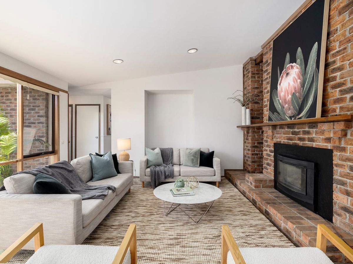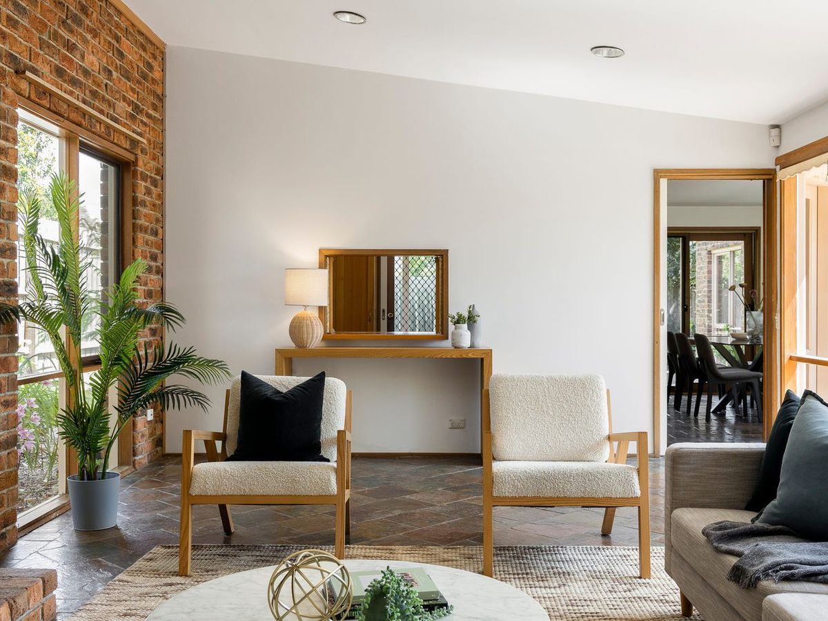 Step inside to a welcoming living room with soaring three-metre raked ceilings, exposed brick feature wall and a cosy fireplace (being Melbourne you just never know) an ideal spot to unwind during the holidays. Floor-to-ceiling windows look onto a central courtyard garden, filling the home with sunlight and creating a magical setting for festive lunches or twilight dinners.