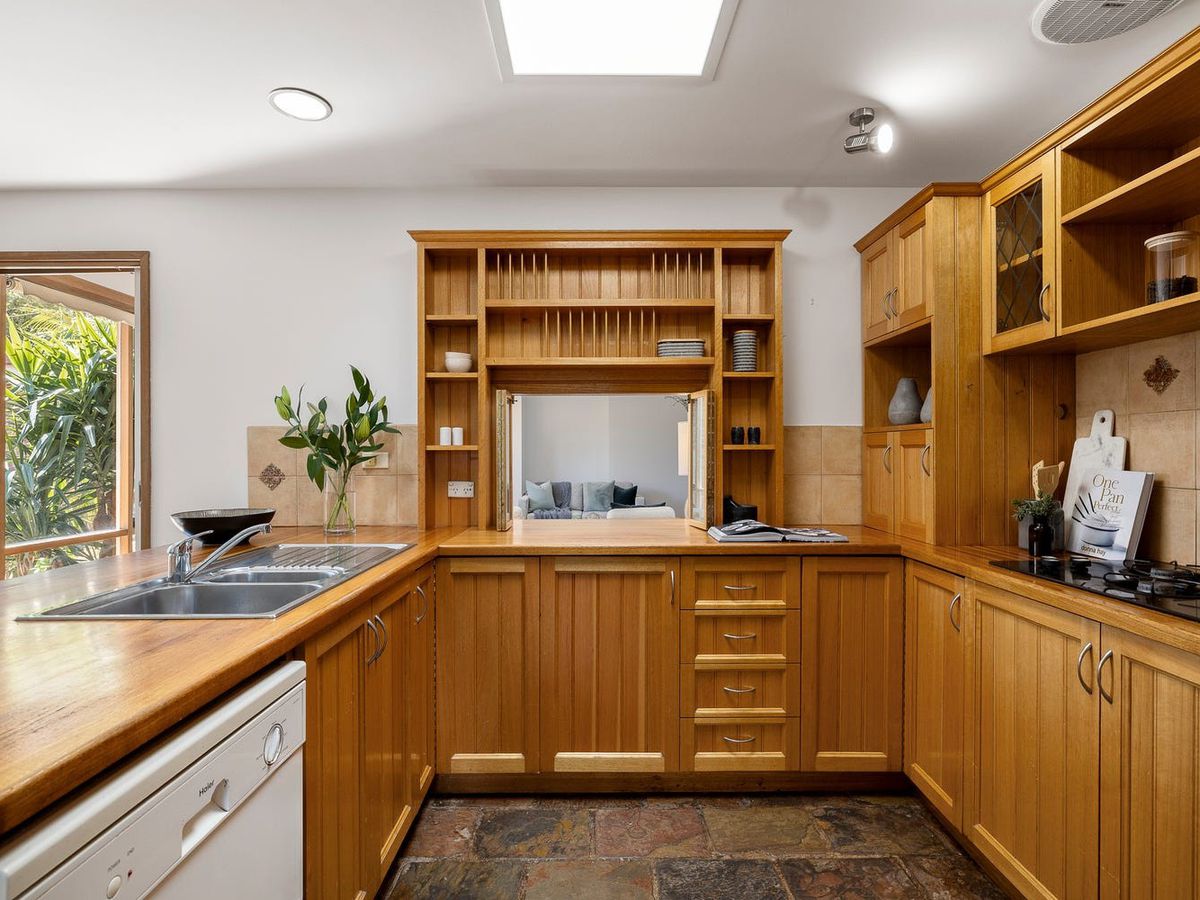 The quality timber kitchen includes a wall oven, gas cooktop, pantry, servery window and a timber breakfast bar now complete with a new dishwasher (being installed) for easy meal clean-up. A second living/meals area flows to a decked verandah and spacious backyard, perfect for relaxed summer living.