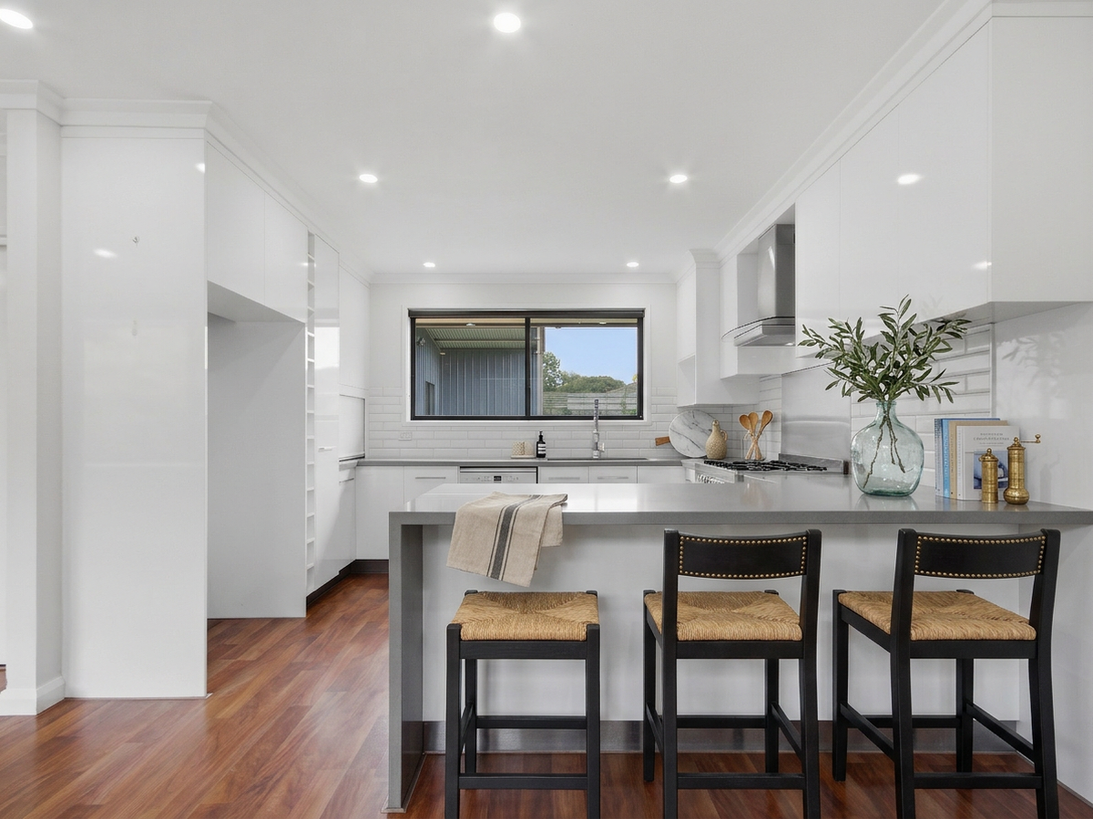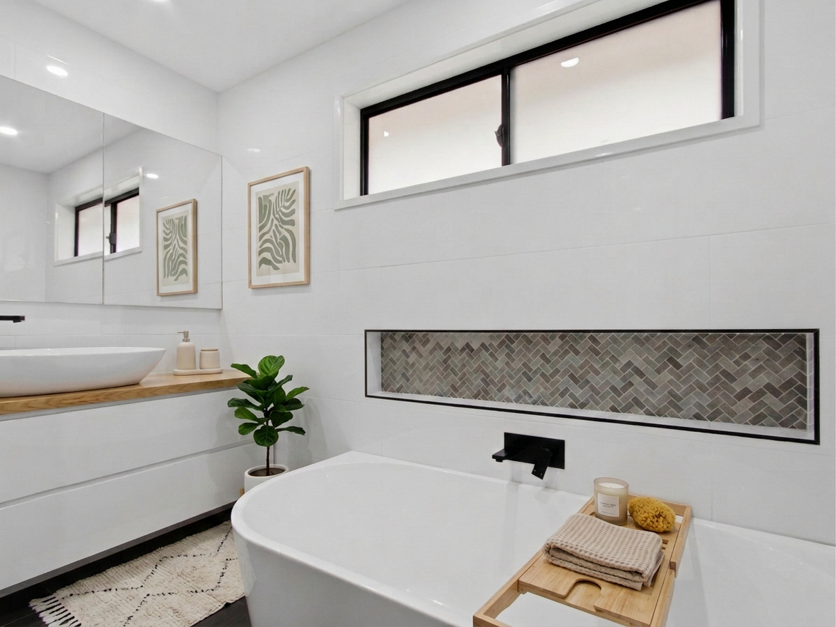 Inside, youll find three generous bedrooms with built-in robes, including a master retreat complete with a sleek, hotel-style ensuite featuring a frameless walk-in shower, large vanity, and floor-to-ceiling tiles. The home is serviced by a stunning central bathroom, showcasing a back-to-wall freestanding bath, walk-in shower, and quality finishes throughout.