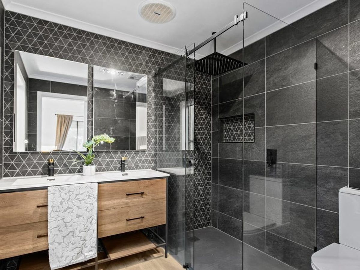 The master bedroom is privately positioned with its own ensuite and walk-in robe, while the remaining bedrooms are serviced by a central family bathroom.